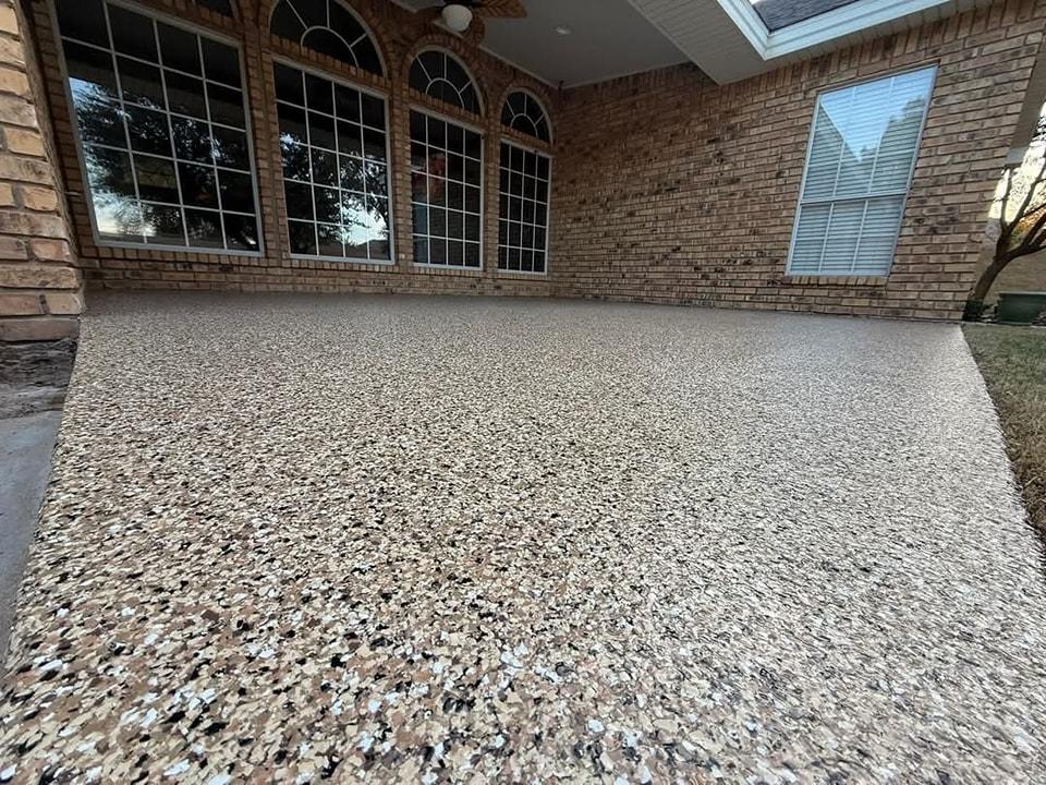 Enhance your outdoor living space with our UV-resistant and slip-resistant patio and pool deck coatings. Designed to handle Texas heat, moisture, and foot traffic, these coatings add beauty, durability, and safety to your patio or pool area — keeping it cool, stylish, and easy to maintain year-round.